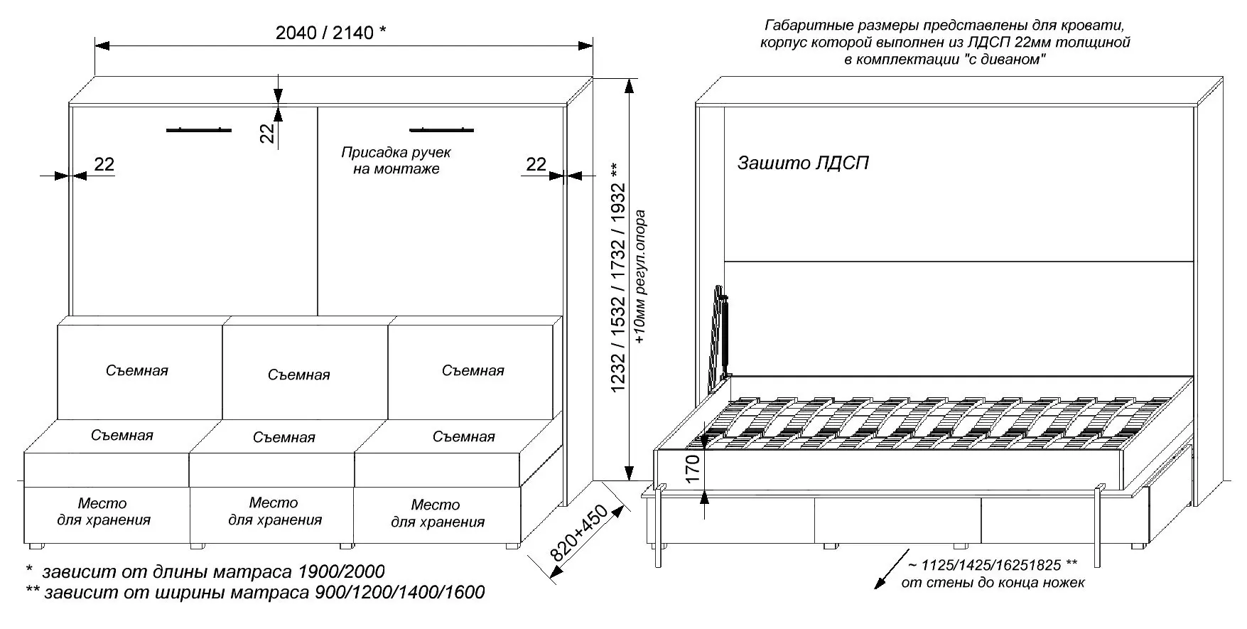 Горизонтальная шкаф-кровать с диваном "Galaxy Start".  Работает на механизме раскладывания собственной разработки "Start". Кровать раскладывается легким движением руки, превращаясь в полноценное спальное место. Просто потяните ее за ручки, расположенные на фасаде и выставите ножки-опоры.